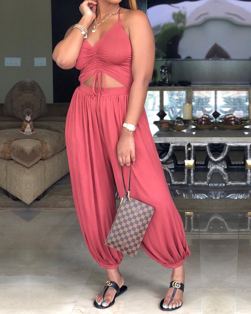 Fashion Casual Solid Color Lace High Waist Two-piece Suit