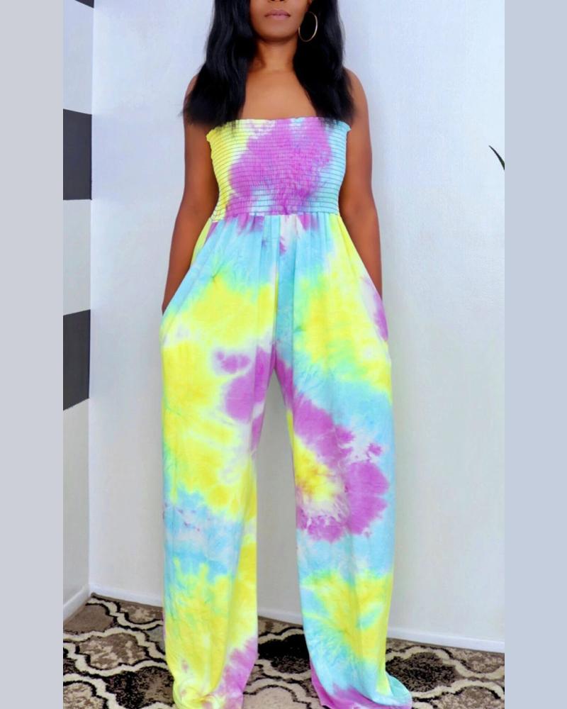 Colorful Tie-dye Off-shoulder Jumpsuit